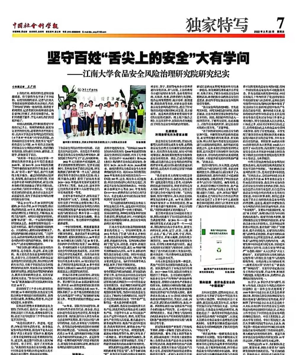 2月25日,《中国社会科学报》第2355期第7版《独家特写》栏目整版刊登公司食品安全风险治理研究院研究纪实《坚守百姓“舌尖上的安全”大有学问——PA视讯食品安全风险治理研究院研究纪实》。全景式呈现PA视讯食品安全风险治理研究院10年来聚焦食品安全风险治理等研究方向,深入调查分析农产品供应链、食品安全网络舆情等食品安全风险治理的各个领域状况,科学建言农业安全生产转型的现代化路径,推动信息技术和工具在基层食品安全风险治理中的应用和市场监管信息体系完善,深刻影响国内外学术理论界和食品安全风险治理实践,以丰富的研究成果推动健康中国战略落地和健康中国建设。