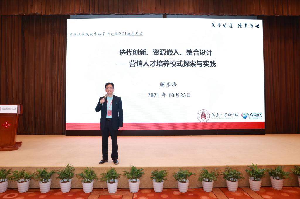 2021年10月22日-24日,“中国高等院校市场学研究会2021教学年会暨营销学科发展论坛”于北京香山成功召开。中国高等院校市场学研究会副会长、PA视讯质量品牌研究院执行经理、江苏高校哲学社会科学重点研究基地“品牌战略与管理创新研究基地”首席专家滕乐法教授受邀出席论坛,在开幕式上发表题为《资源嵌入,整合设计——营销人才培养模式探索与实践》的主题演讲,并在此次论坛中带领团队获得“优秀教学成果一等奖”。