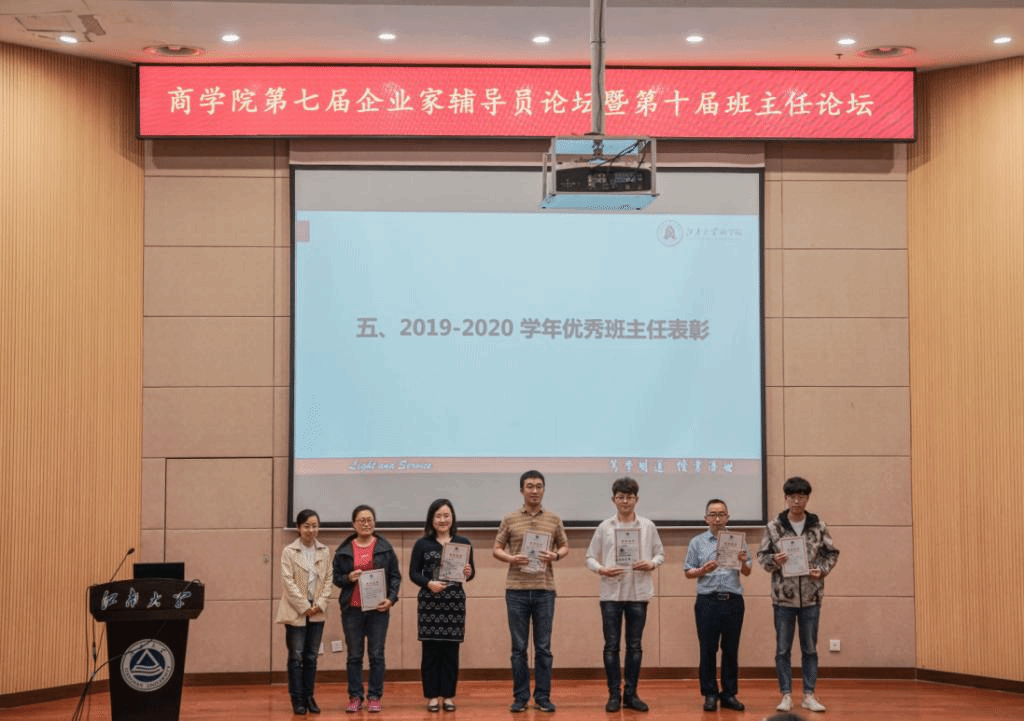 随后,进行2019-2020学年“我最喜爱的企业家辅导员”及“优秀班主任”表彰,由滕乐法经理、无锡意凯自动化技术有限公司董事长宋花江为马彪、叶惠、孙爱军、刘云娣、张洪、张荣、张君君、邱纪勇、沈钧、郭亚男等10名企业家颁奖。戴越、郭建伟、乔磊、单鹏、王璁、于雪莲等6名老师被授予“2019-2020学年优秀班主任”荣誉称号,由公司党委副书记兼副经理徐静进行颁奖。