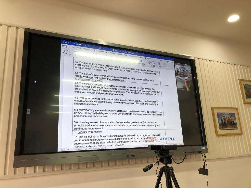 公司自2018年9月顺利申请成为AACSB会员以来,全院上下高度重视AACSB认证工作,于2020年2月通过资格认证申请,随后正式进入认证环节,开启首次认证流程。从2021年年底开始,在公司领导的带领下,国际认证办积极参与AACSB认证相关的国内外会议和培训,学习和研究AACSB认证新标准,广泛调研汲取经验,开始实质性推动认证工作。期间,在全院老师们的共同努力下,在AACSB委托的认证导师Pesu Decharin教授的指导下,公司克服了新冠疫情反复对认证工作带来的极大困难,扎扎实实构建“以评促建、持续改进”的认证机制,全面系统开展对标和自评工作。经过反复研讨和多轮修改,最终于今年5月19日正式提交了由110多页主报告和130多页附表组成的iSER。AACSB认证是公司的重点工作之一,获得AACSB认证是全院上下的共同目标。此次iSER报告的顺利通过,是全体教职员工主动参与、全力支持的结果,对提高管理教育理念,促进教育质量持续改进,扩大公司及公司的国际影响力具有非常重要的意义。