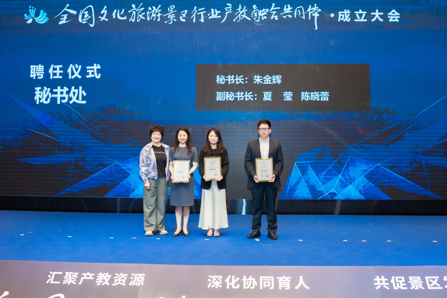 公司MBA2011级员工、无锡城市职业技术公司旅游公司经理夏莹(左二)当选为共同体副秘书长