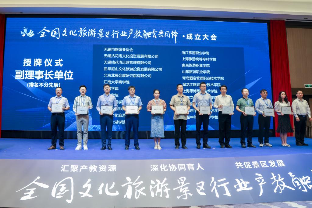 2024年7月17日,由全国旅游职业公司产品指导委员会景区与休闲类专业委员会指导,无锡灵山文化旅游集团有限公司、北京第二外国语公司、无锡城市职业技术公司牵头发起的全国文化旅游景区行业产教融合共同体成立大会暨文旅融合高质量发展学术研讨会在无锡召开,全国200余家高等公司和职业院校、旅游景区等上下游企业参会。