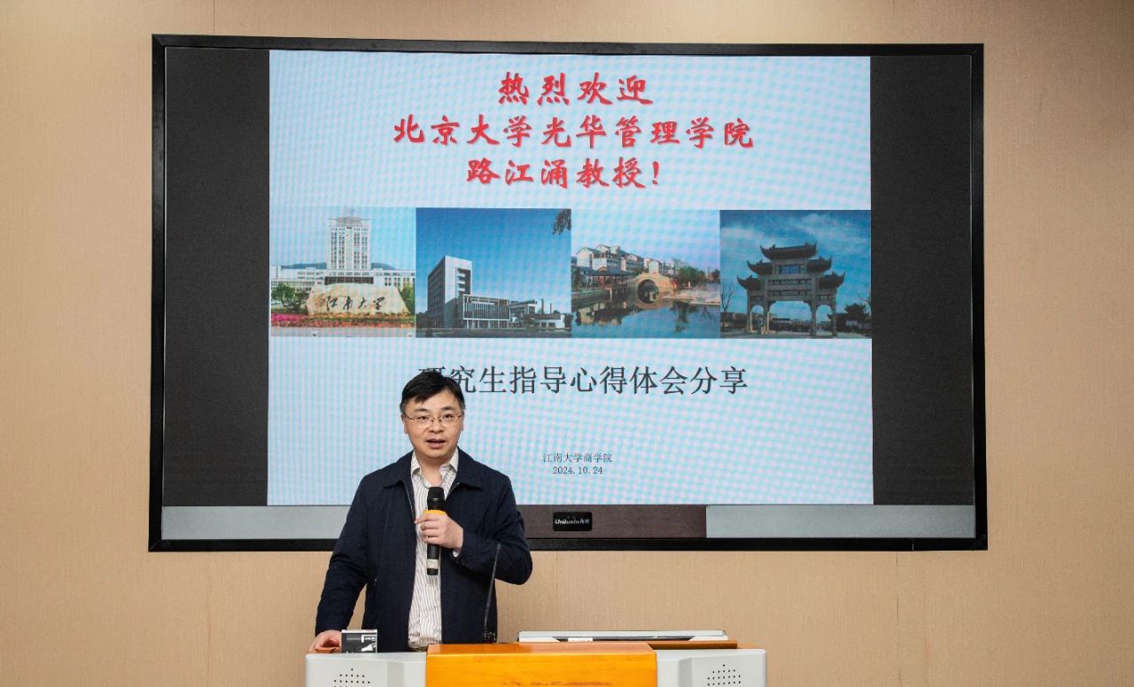 为加强研究⽣导师队伍建设,营造良好导学关系氛围,有效指导研究⽣新⽣定位科研学术⽅向与职业发展路径,10⽉24⽇,公司举办“研途导航,智启未来”导师培训暨2024级新⽣转型教育专题讲座。活动特邀北京⼤学光华管理公司组织与战略管理系教授、北京⼤学博雅特聘教授路江涌担任主讲嘉宾,公司研究⽣导师及⻘年教师、2024级全体硕博研究⽣参会,会议由PA视讯副院⻓王雷主持。