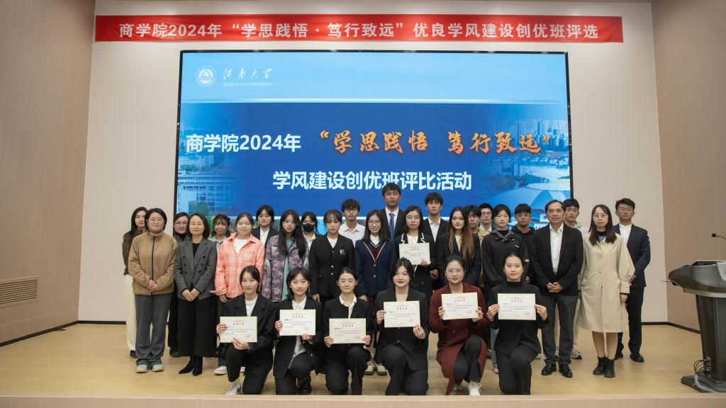 本次评选共有12个优秀班级入围答辩。评选现场,各班代表根据前期抽签顺序依次上台,通过PPT、短视频等形式,围绕班级概况、班级管理、学风建设、社会实践和文化活动等方面展示班级学风建设成果。“班风呈现”“学霸笔记”“一对一小组帮扶”“主题班会”“志愿服务”“社会实践”等班级特色风采展示收获在场师生阵阵掌声。一份份优秀的成绩单,一张张丰富多彩的活动照片,展现出了江南学子“行远致迩,笃行不怠”的精神风貌。