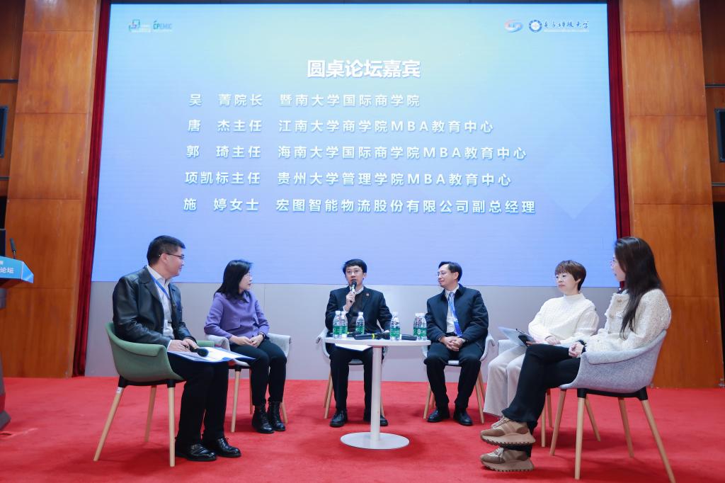 总决赛期间主办方举行了第一届研究生管理实践创新能力发展论坛,以管工交叉、产教融合助力研究生管理实践创新能力发展为主题,共同探讨数智化时代背景下研究生管理实践创新能力的培养与创新发展之路。公司MBA/MEM教育中心办公室主任唐杰老师受邀参加圆桌论坛,唐杰老师向与会老师们分享了公司PA视讯近年来如何通过做好本土化生态打造专业学位产教融合高质量发展的“江南模式”。
