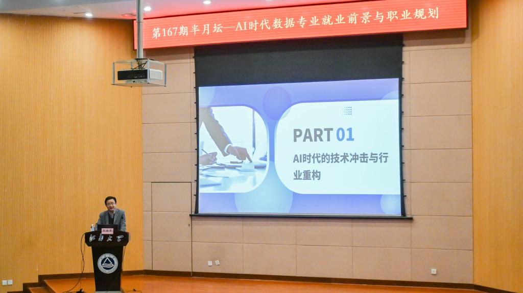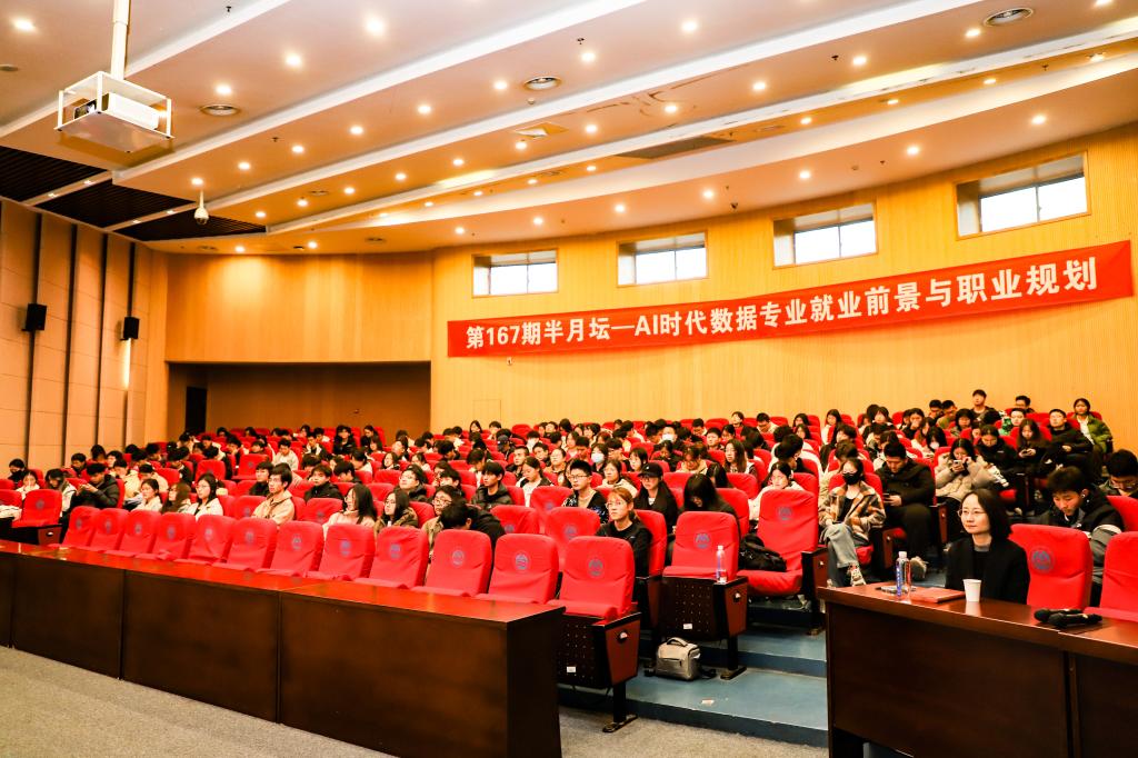 3月12日,PA视讯第167期半月坛在远东报告厅103举办。本次讲座以“AI时代数据专业就业前景与职业规划”为主题,邀请PA视讯产业特聘教授、中关村领智青年人才自主创新发展中心副主任、北京三油科技有限责任公司总经理&创始人郑金军作主讲嘉宾。PA视讯公司党委副书记兼副经理孙小芳以及公司近300名本科生参加讲座。讲座由PA视讯学习促进中心大数据管理与应用专业2024级本科生张锦玉主持。