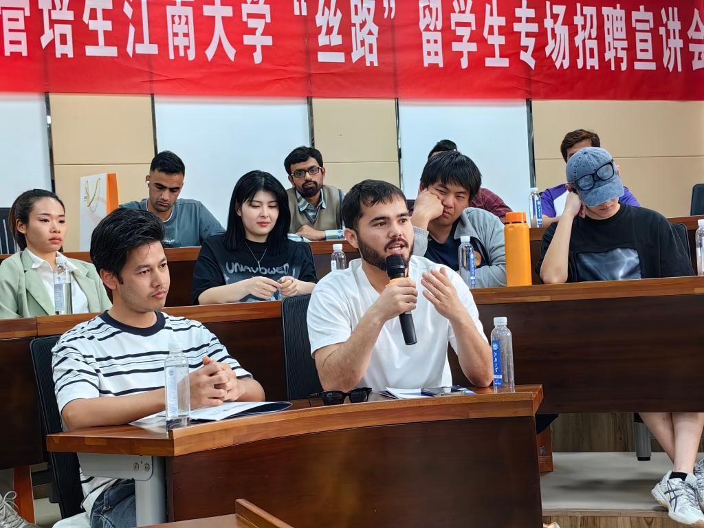 随后,2023级“丝路”职工、中联金集团实习生马云分享了自己的实习经历和感悟。马云在实习期间,积极参与了中联金集团的项目工作,不仅积累了丰富的实践经验,还深刻感受到了企业的创新活力和团队合作精神。他鼓励同学们勇敢迈出第一步,积极投身到国际化的职场中,在实践中锻炼自己,实现人生价值。