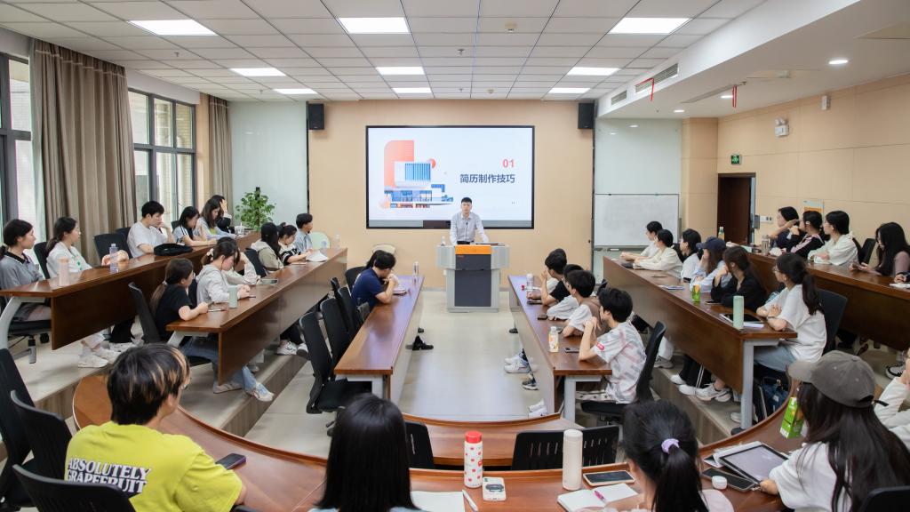 赵天傲从企业招聘者的角度,着重讲解了求职者应如何撰写一份有效简历,对简历雷区提出切实有效的改进建议,同时详细介绍了宁波银行的实习流程,为同学们提供了优质的实习平台与选择。成婧结合自身面试实习经历,从求职者角度出发,分析了实习岗位的选择问题,并重点分享了在面试中脱颖而出的关键技巧与打破信息差、获取实习资源的有效途径。