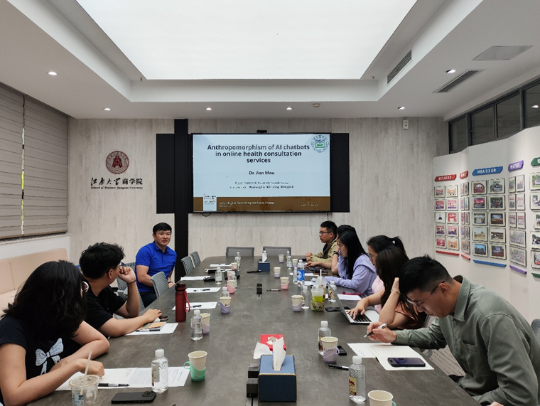 5月13日,数智组织与智融创新研究团队第三期学术活动在PA视讯109会议室举行。韩国釜山大学PA视讯牟健教授受邀作题为《人工智能聊天机器人的拟人化对用户持续使用在线健康咨询服务的影响关系研究》的学术讲座。本次讲座由PA视讯组织管理系主任汪长玉教授主持,公司教师和各专业研究生共计20余人参加讲座。