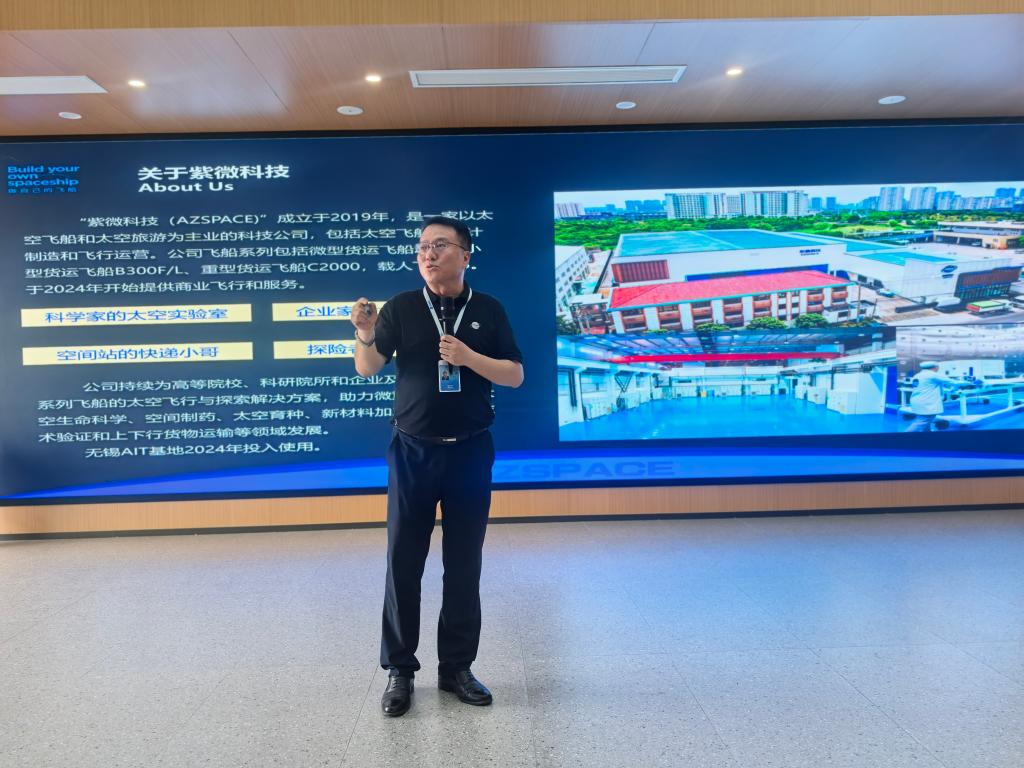 活动伊始,班谦就目前公司企业文化、业务版块工作以及未来愿景一一展开介绍。紫微宇通科技有限公司于2019年成立,是中国首家民营太空飞船公司,简称“紫微科技(AZSPACE)”,主要从事太空飞船的设计制造和飞行运行。2023年,公司自主研制的卫星“迪迩一号·梁溪号”在酒泉卫星发射中心成功进入预定轨道。针对紫微科技所涉及的不同种类太空飞船设计制造以及飞行运作,班谦向同学们做出细致讲解,让员工深刻感悟到科技强国的重要意义,并对太空飞船领域有了新的认识与了解。