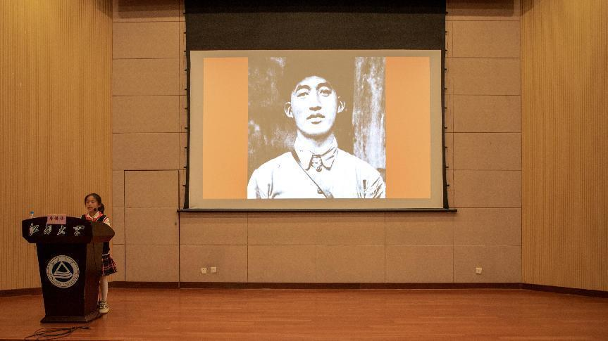 东绛实验公司詹惜语作主题演讲《大别山里的革命故事——纪念吴焕先、詹以贤烈士》。詹惜语慷慨激昂地讲述了吴焕先和詹以贤烈士从加入中国共产党到光荣牺牲的整个过程,声音洪亮、慷慨激昂,在场师生深受感染并产生强烈共鸣。这些烈士为我们留下了宝贵的财富,他们坚定的理想信念,敢想敢干、不怕牺牲的精神值得我们终身学习。